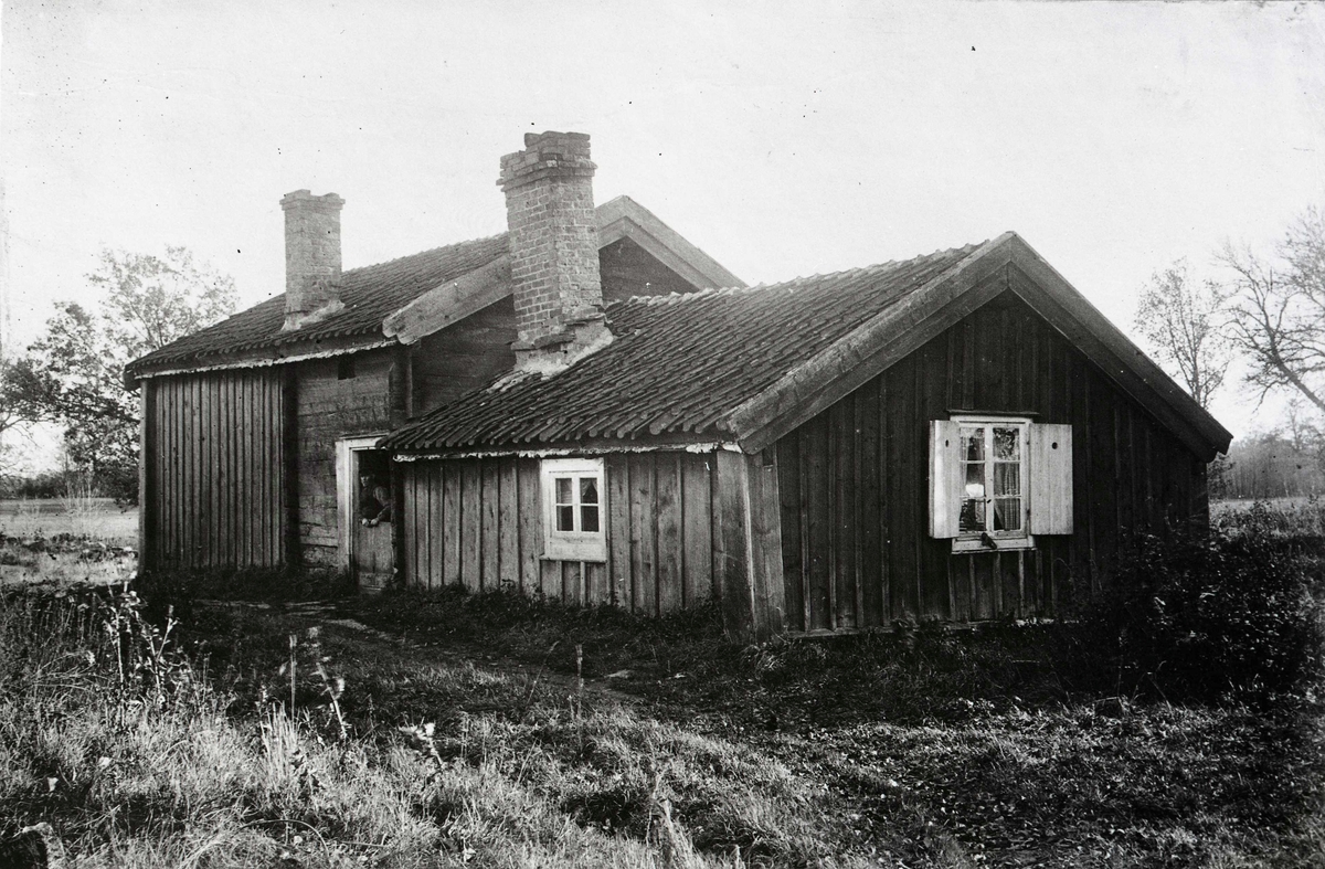 Två sammanbyggda enkelstugor, av olika höjd, i Värnaby.