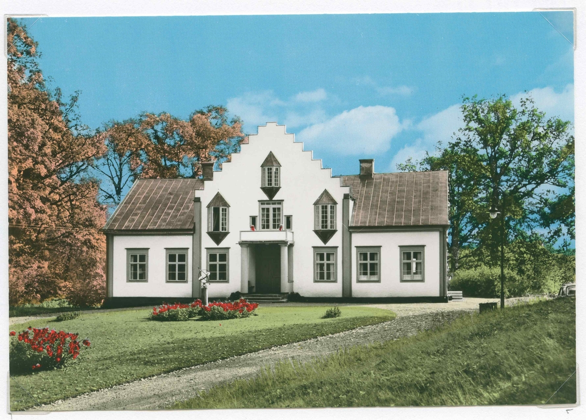 Kolorerat vykort som visar säteriets framsida. Säteriet ligger i Gladhammars socken.