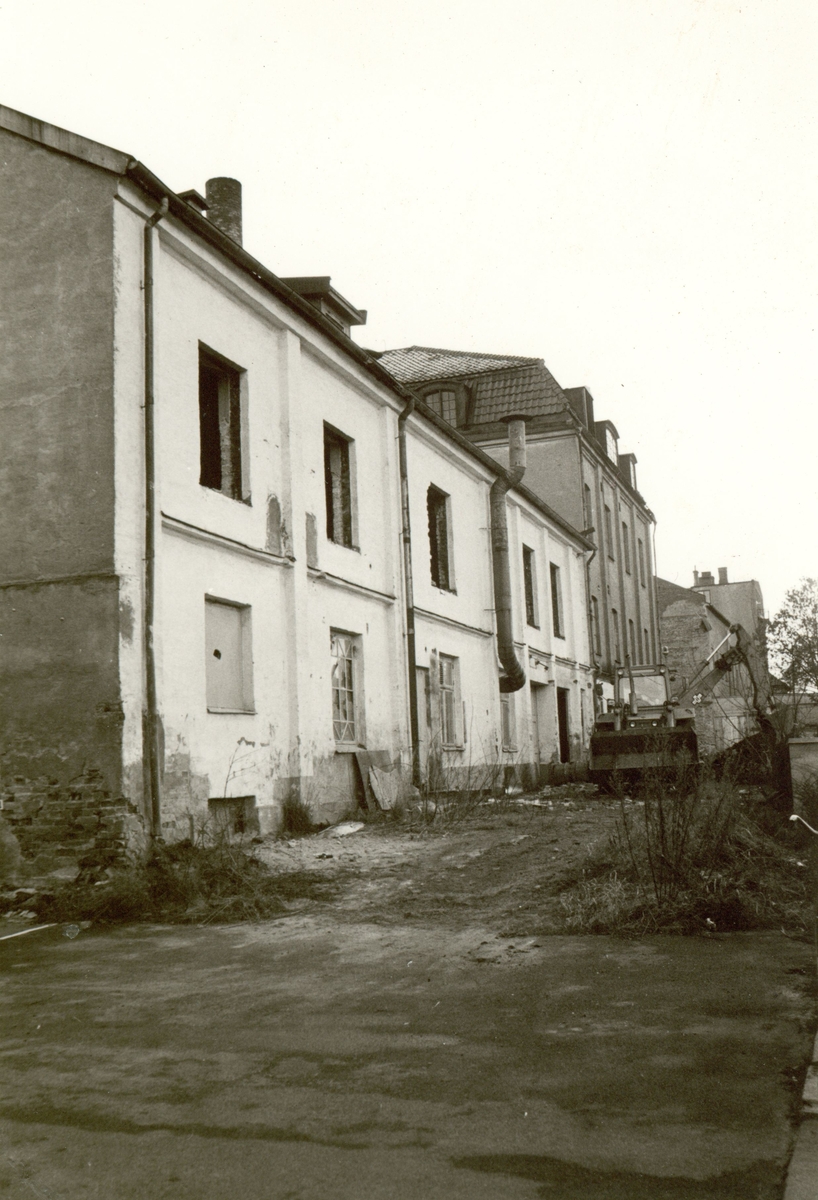 Kvarteret Korpen 12, Fabriksgatan 29 och 31, under rivningen 1973.
