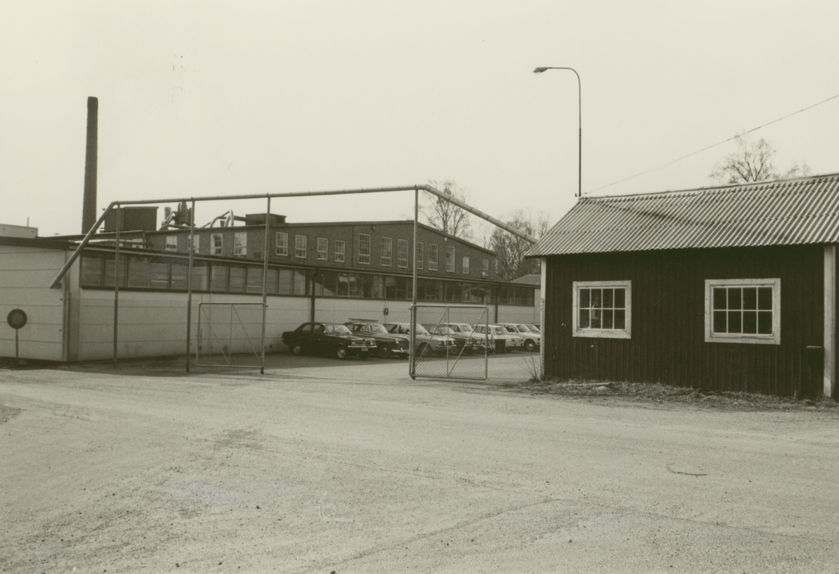 AB Bröderna Sandgrens Trätoffelfabrik med parkering och stängsel i Påryd.