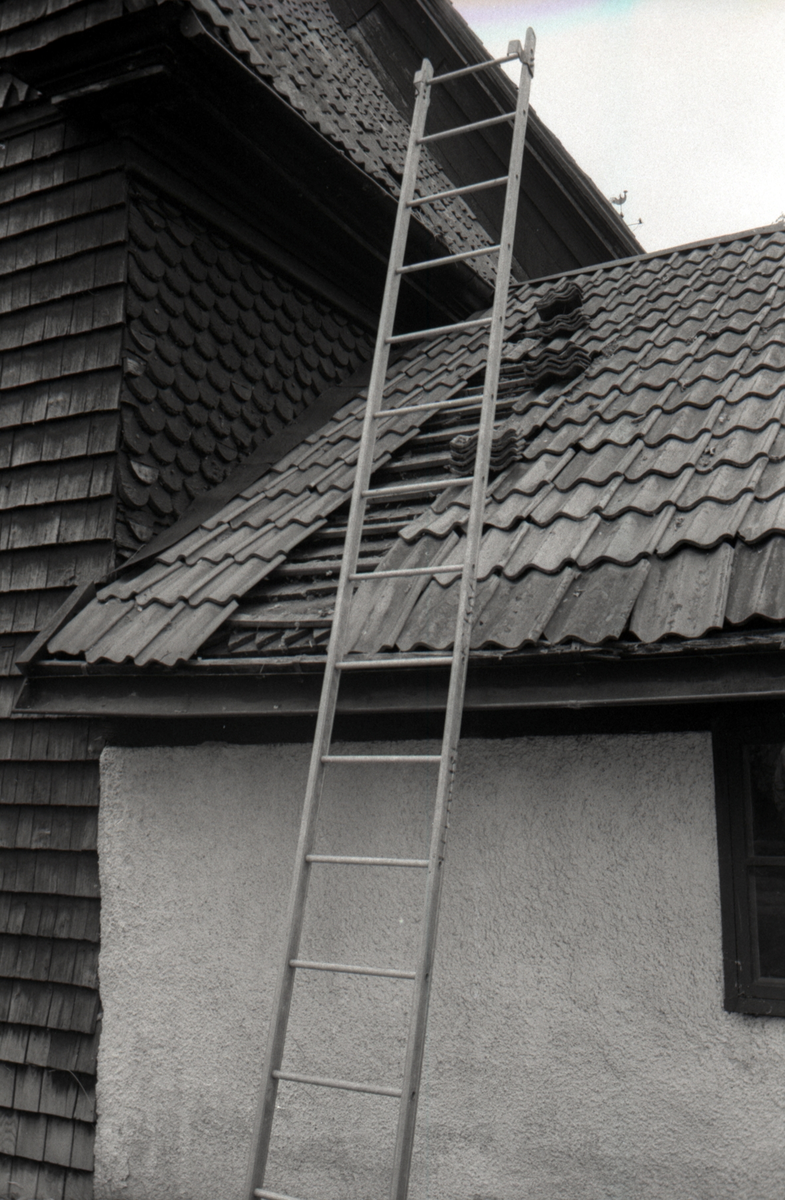Spåntaket på Pelarne kyrka frilagt på sakristians tak.