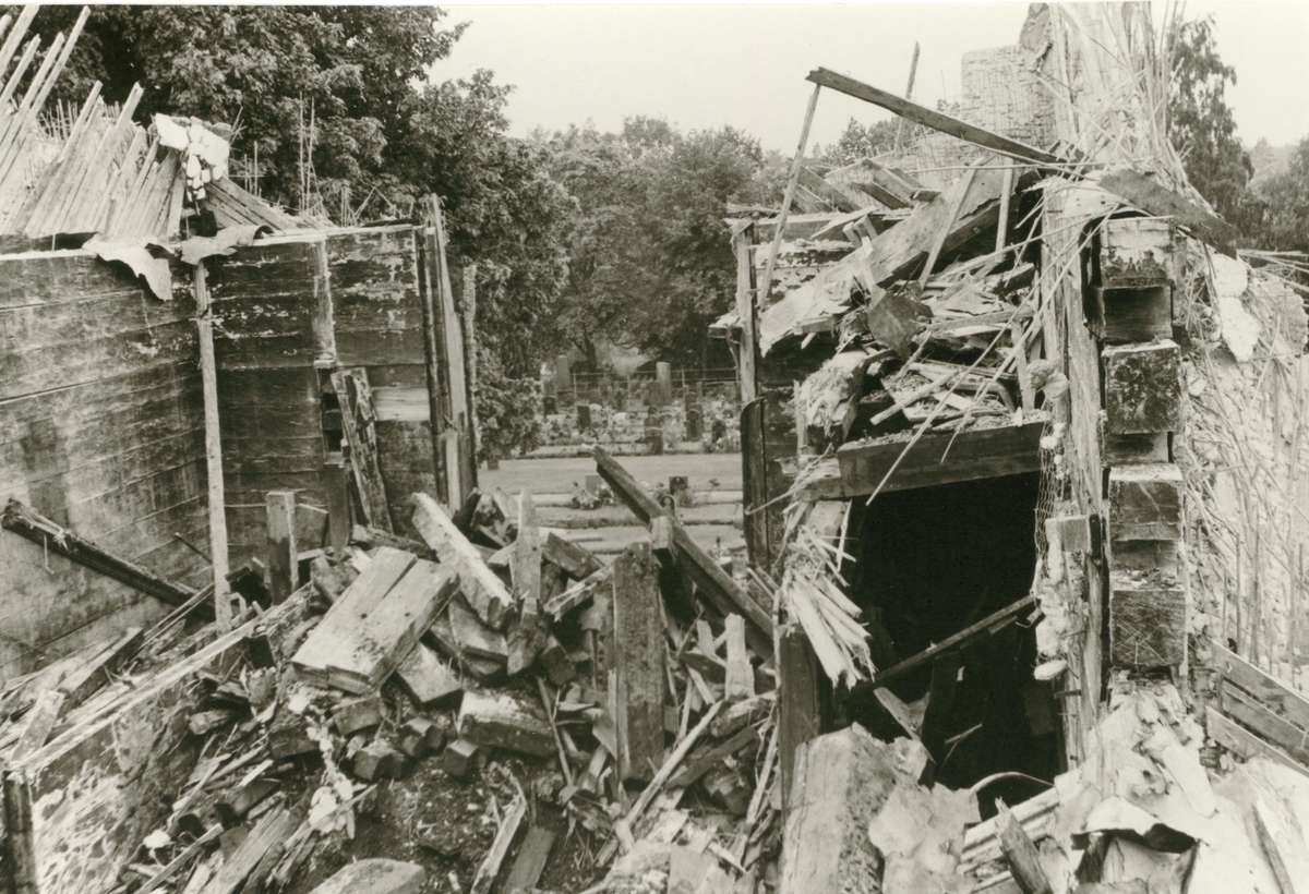Hälleberga kyrka: Kyrkan brann ner 1976-10-18. Branden orsakades av ett elfel.