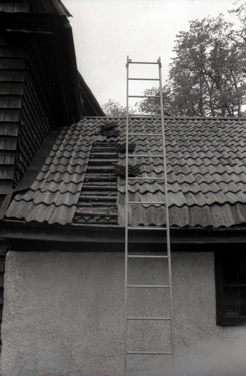 Spåntaket på Pelarne kyrka frilagt på sakristians tak.