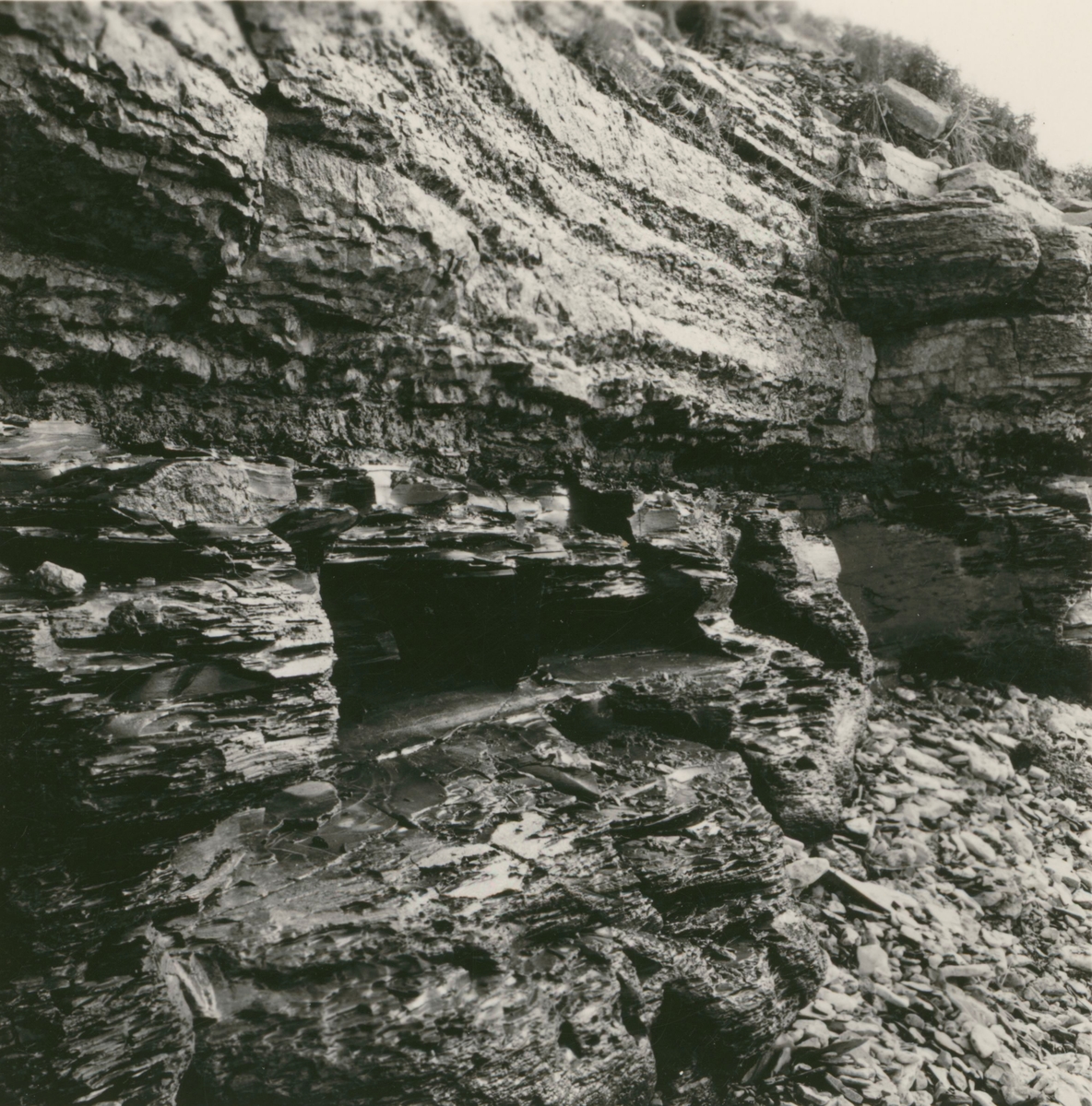 Klint med lerskiffer och kalksten.