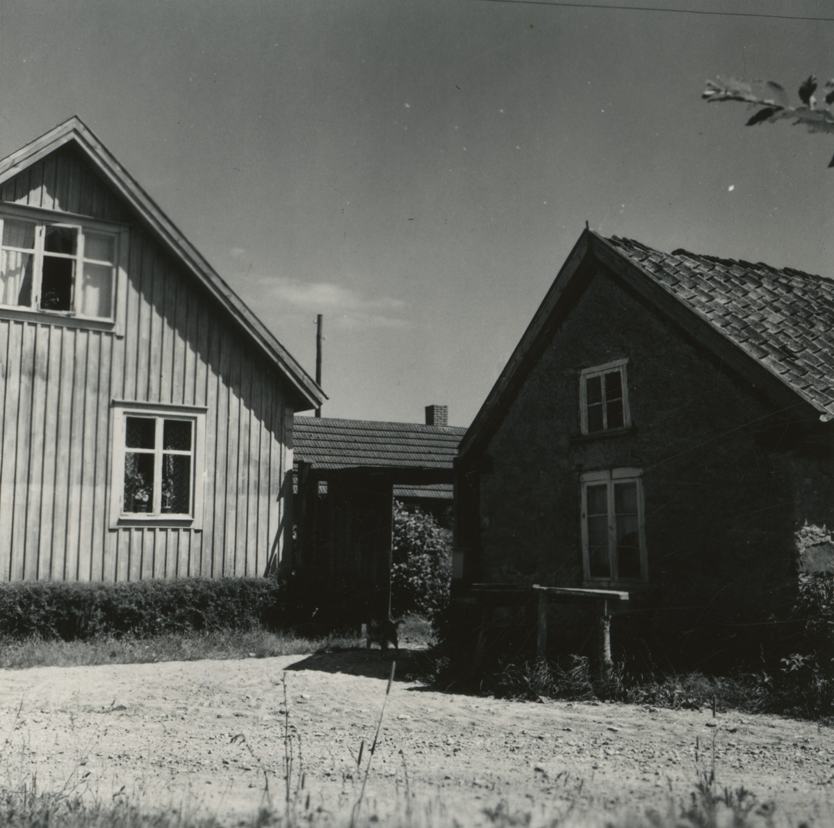 Gården från vägen. Boningshuset till vänster. Brygghuset till höger.