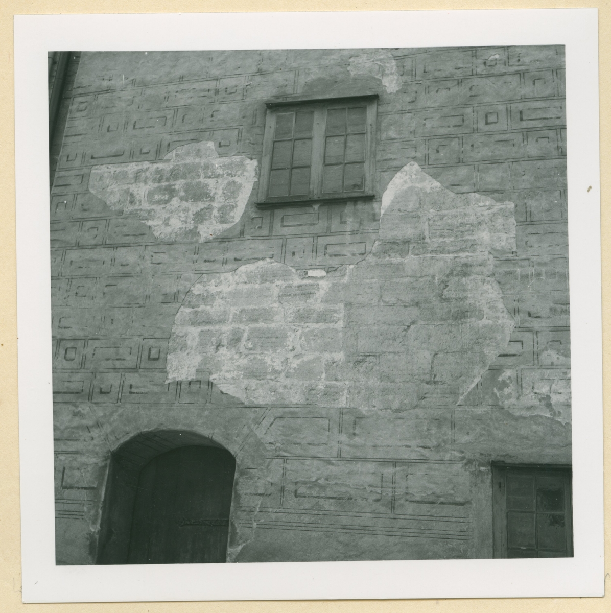 Skador i putsen på östra längan på Kalmar slott.