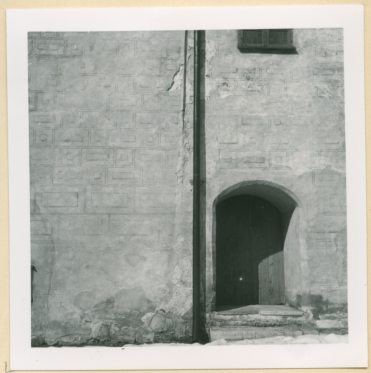 Skador i putsen invid och över porten till Sturesalen.