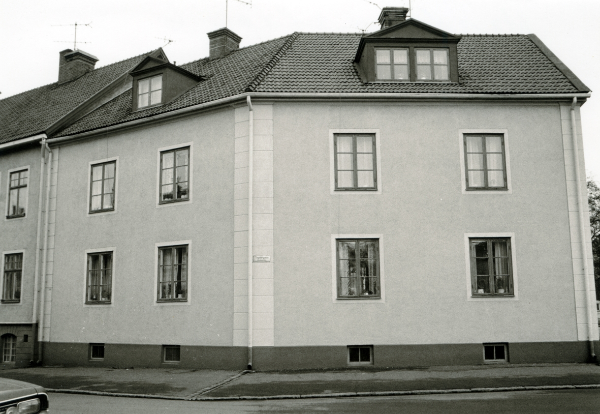 Tvåvånings bostadshus från 1920-talet. Hörnet Ryttaregatan-Tegnérgatan i Kalmar.