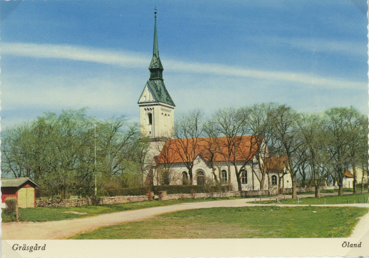 Titel: Vykort med motiv av Gräsgårds kyrka.