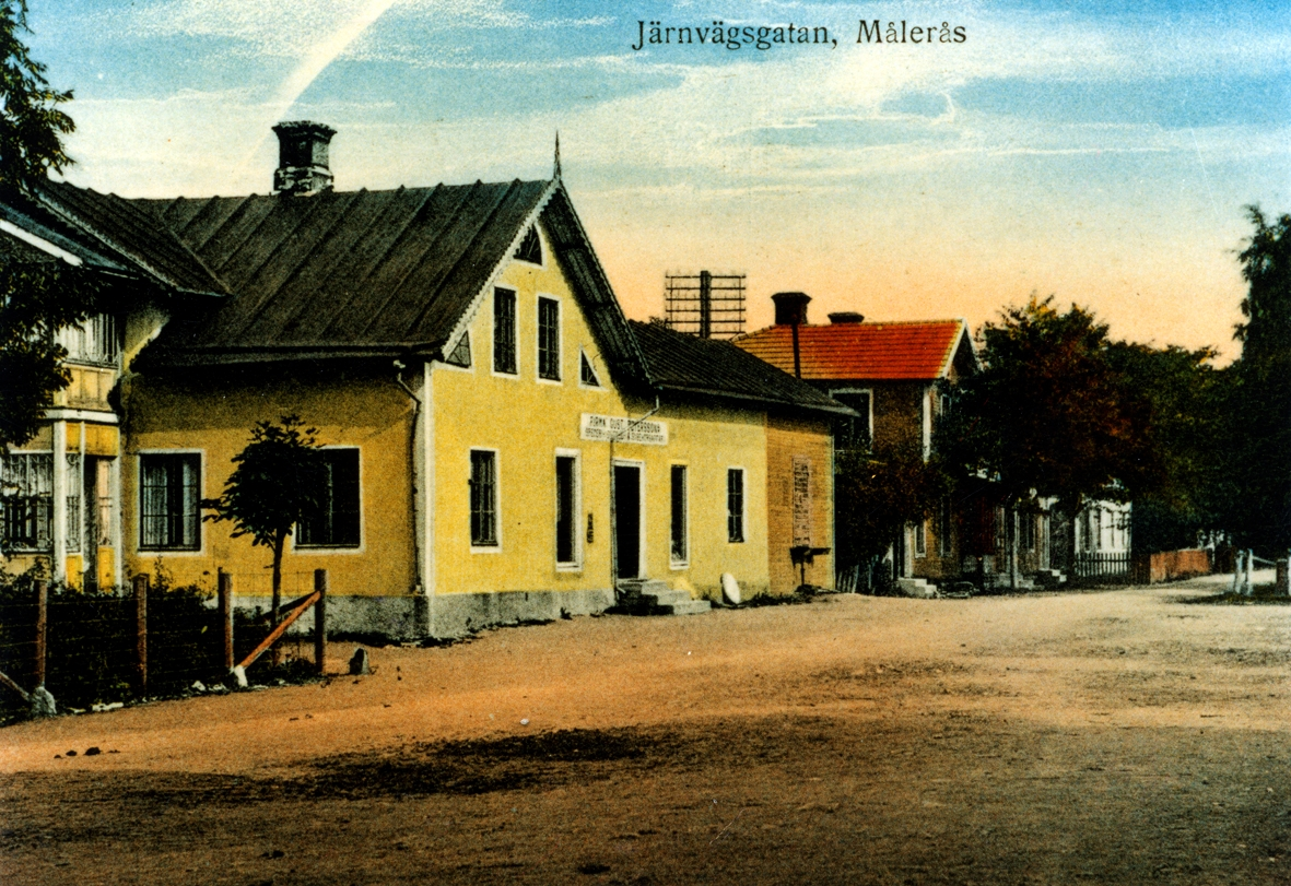 Kolorerat vykort med motiv från Järnvägsgatan i Målerås.