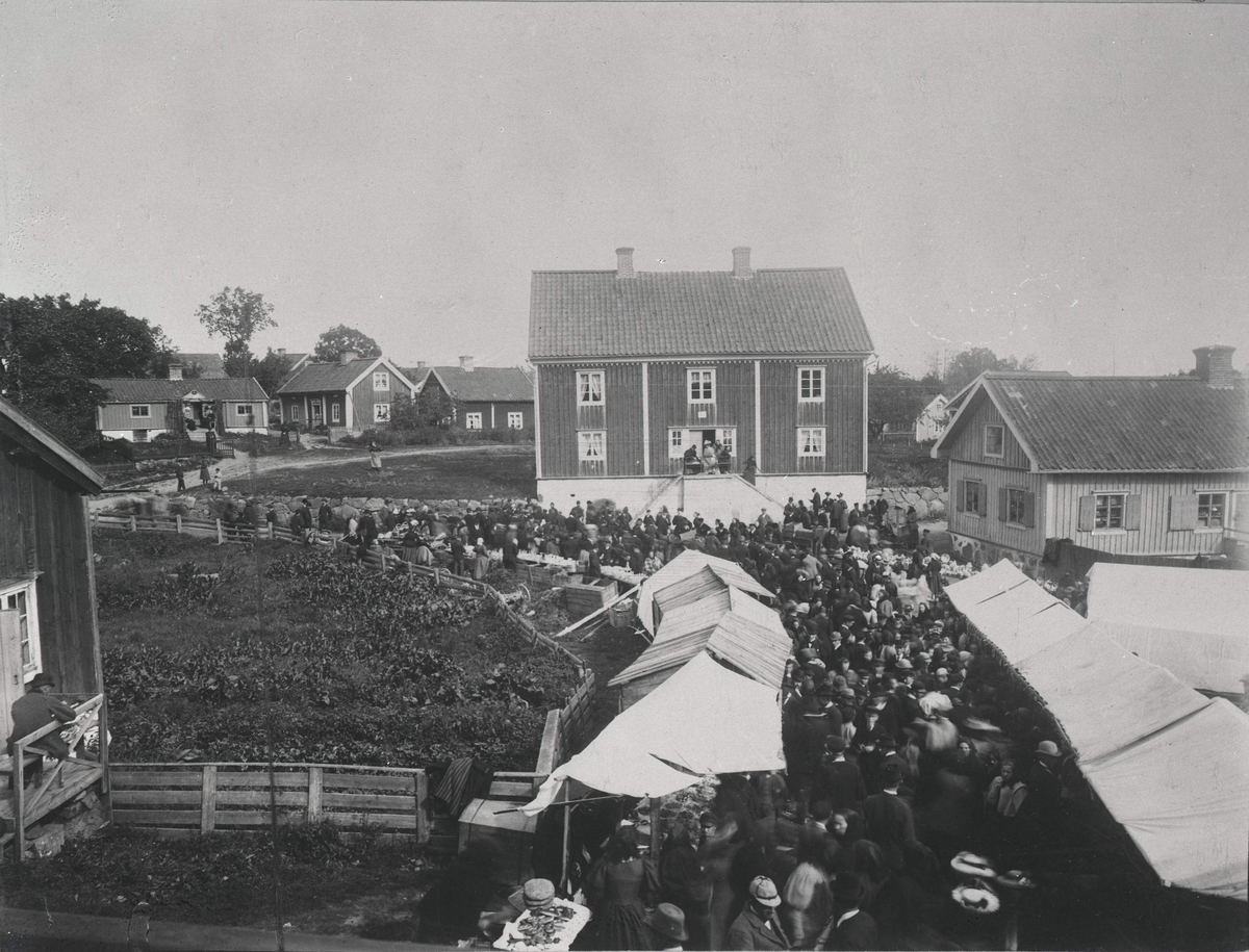 Marknad å Figeholms torg, efter foto 1860-talet, tillhörigt fru Constance Andersson, Figeholm.