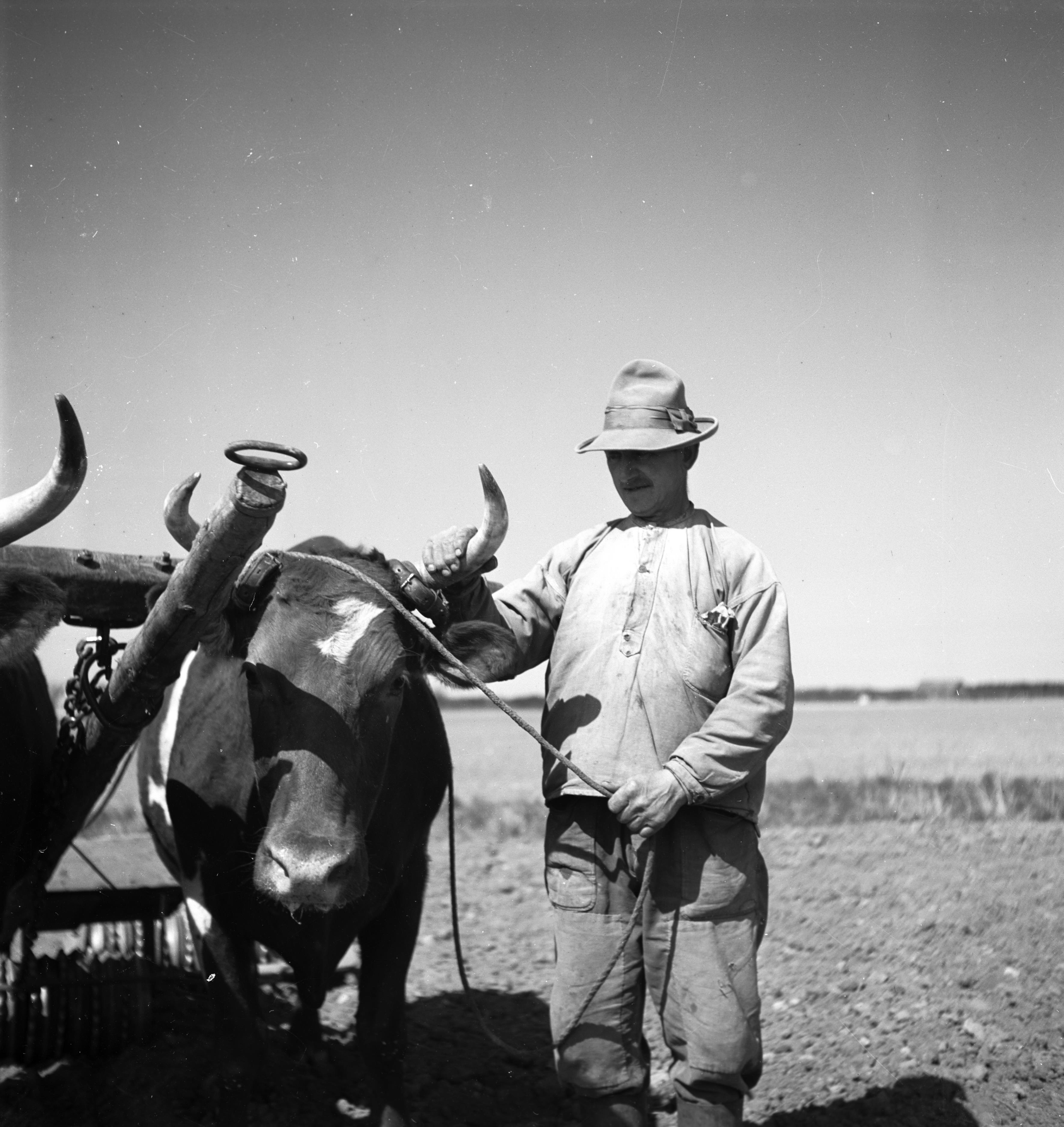 Oxar med vält. Bilden är troligen från omkring 1940.