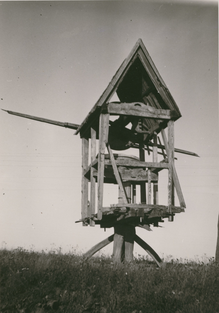 Kvarnskelett intill östra landsvägen. Tack vare ny brädklädsel och nya vingar har denna kvarn kunnat göras till en prydnad.