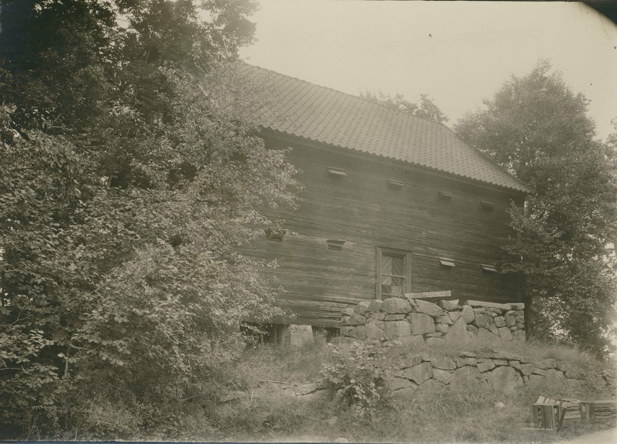Titel: Gamla sockenmagasinet vid vägen till kyrkan.