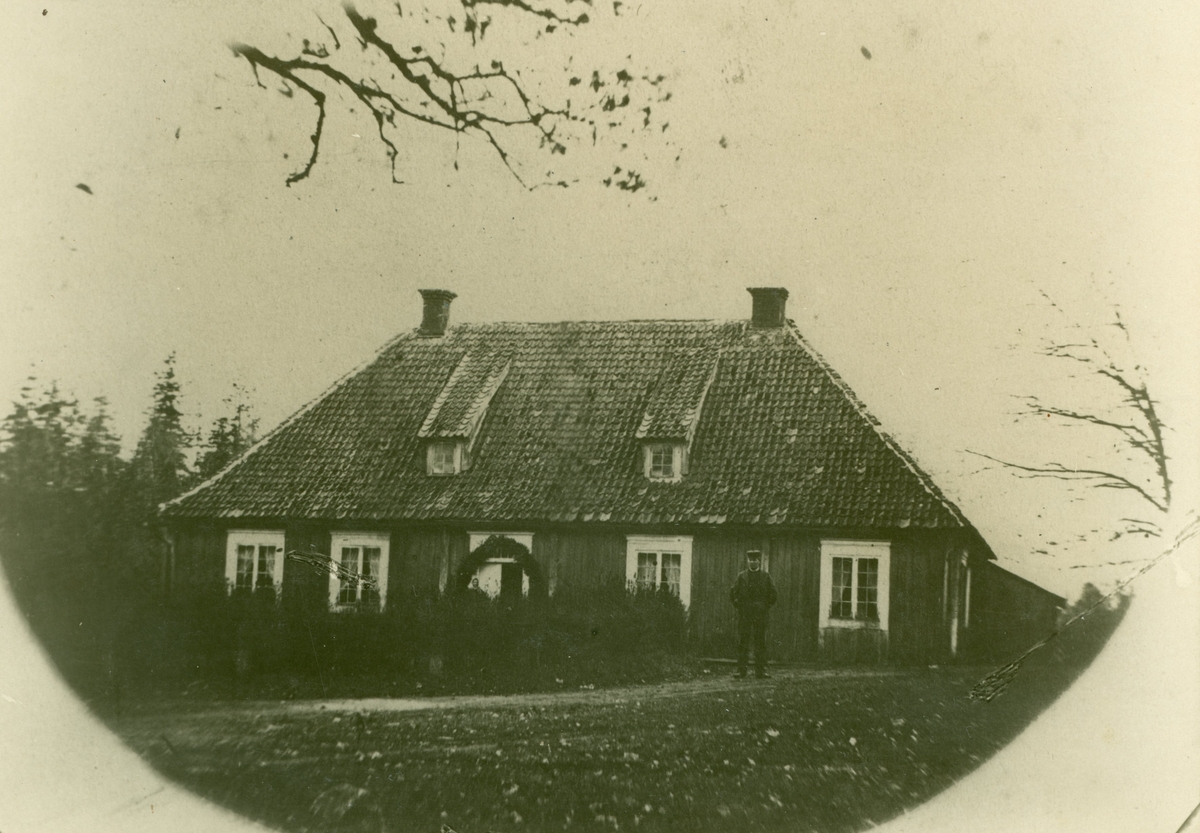 Titel: Huvudbyggningen enligt äldre fotografi. Takkuporna och skorstenarna senare borttagna.