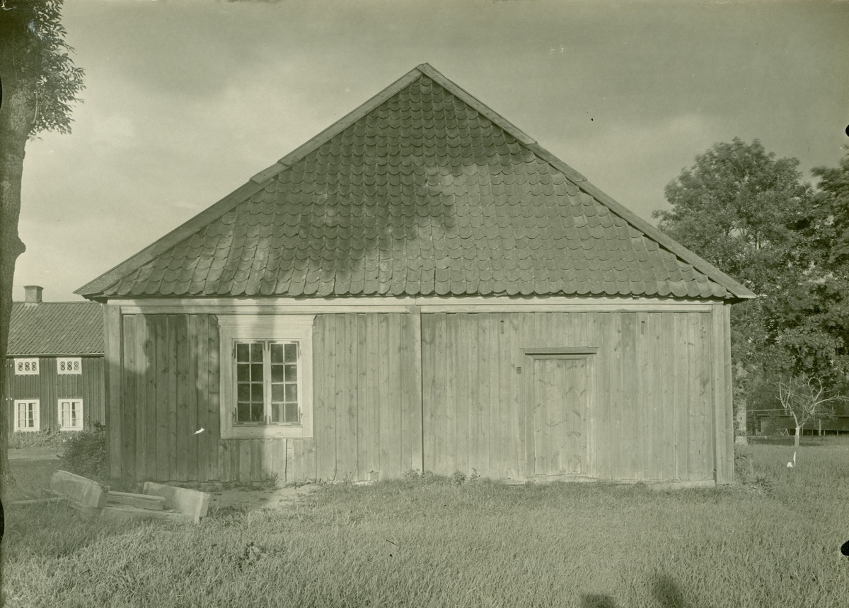 Huvudbyggningen: köksgaveln med dörr till köket.