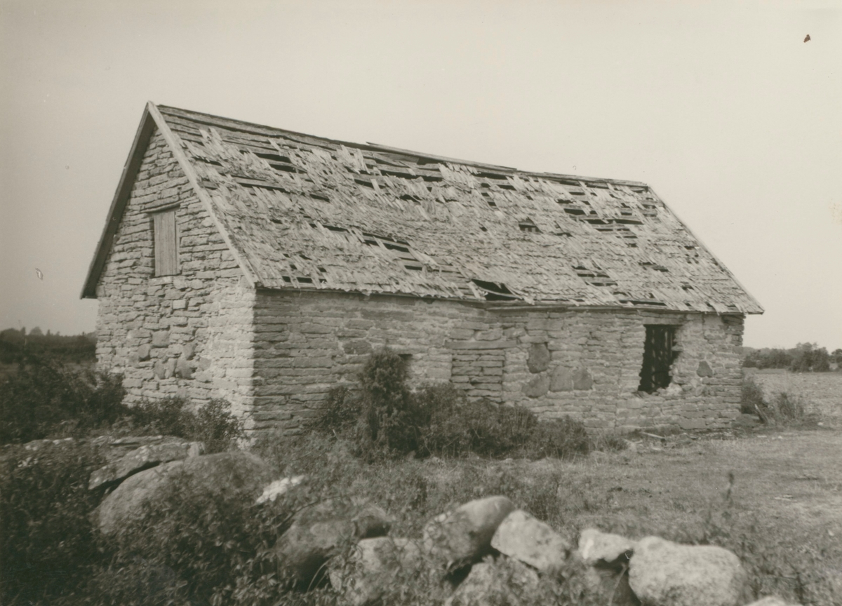 Ängslada med stora gråstenar inbyggda i kalkstensväggarna.