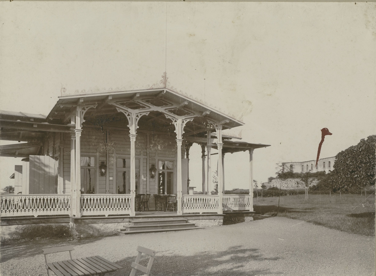 Titel: Slottspaviljongen Höjdens kaffeservering intill Borgholms slottsruin.
