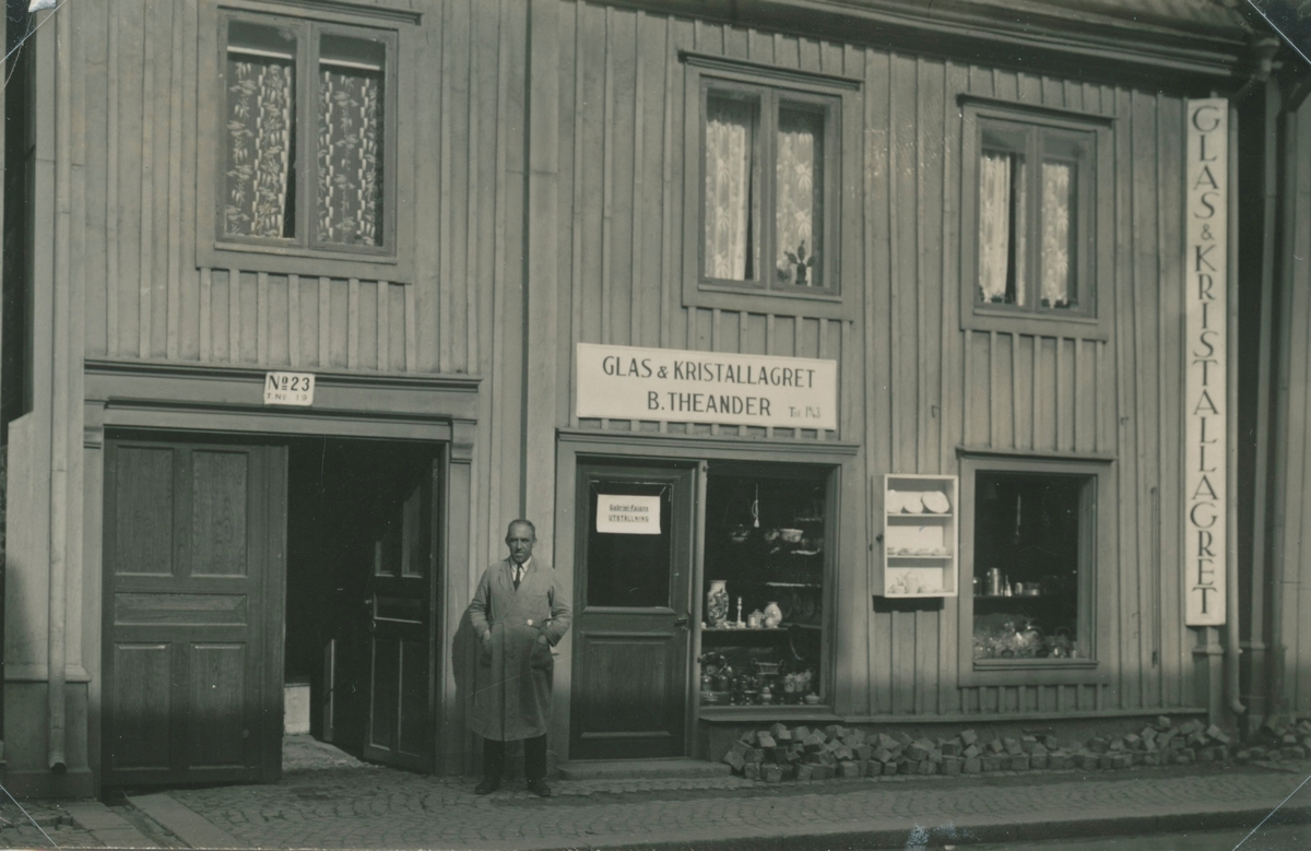 Birger Theander utanför sin affär. Gåva av familjen Theander.