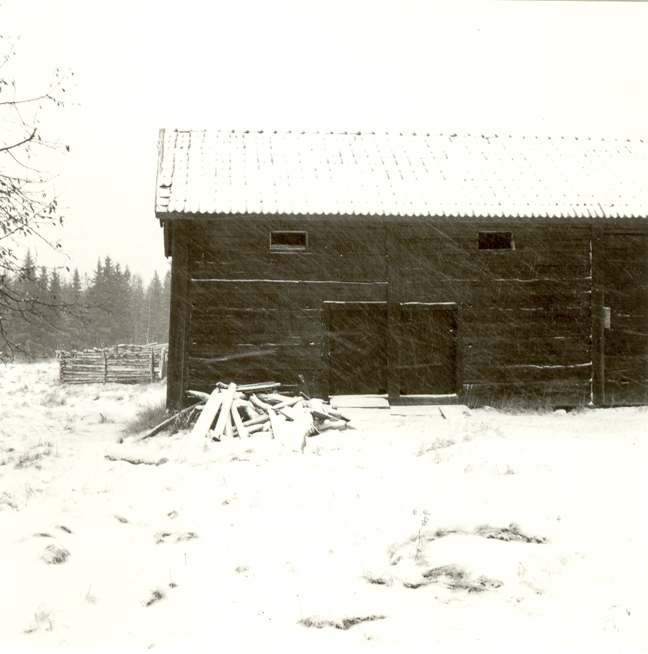 Visthusboddelen av uthuslängan. I bakgrunden till vänster grinden och gärdesgården kring "täppan" och kålgården. Från sydöst.