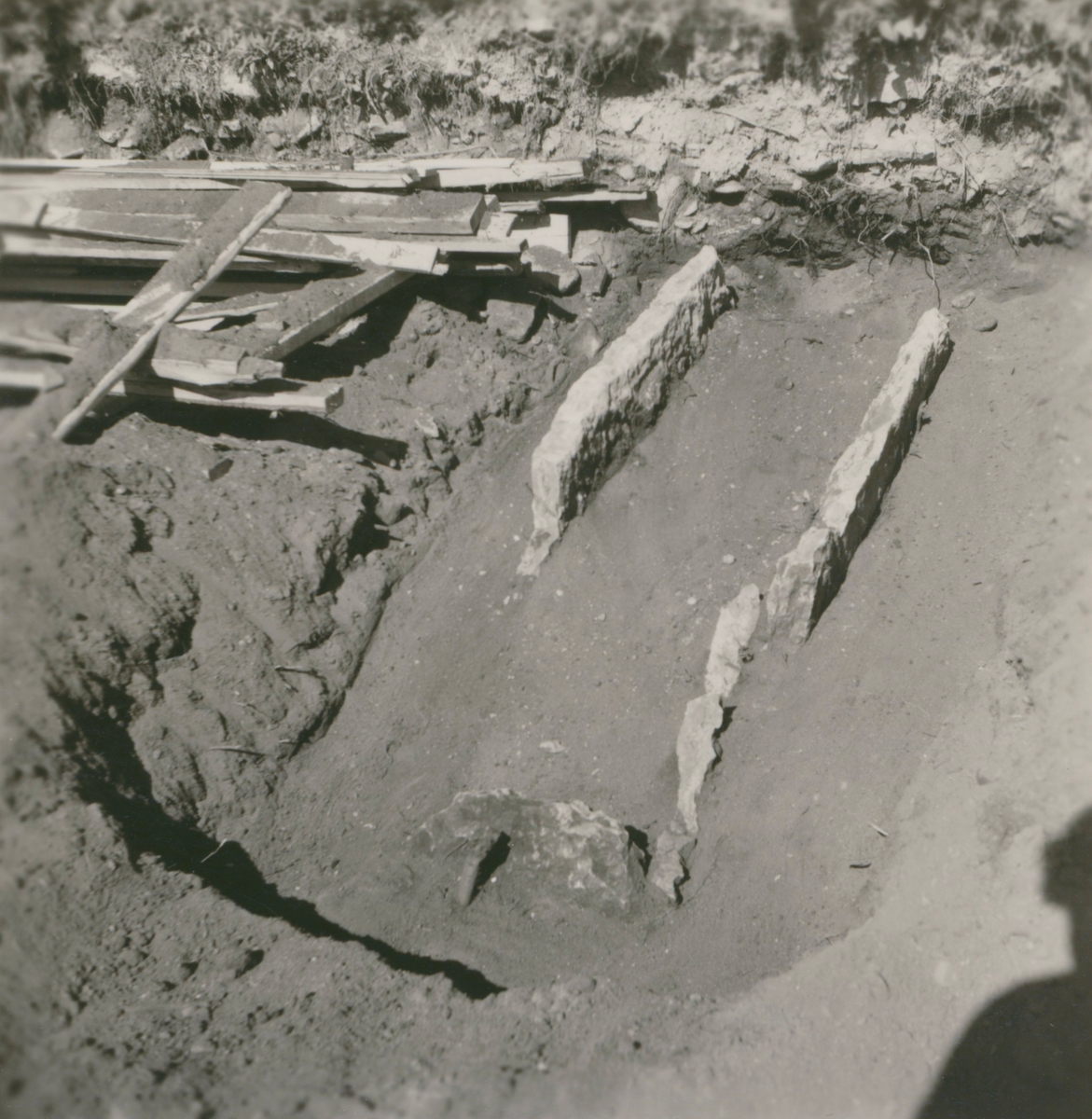Titel: Hällkista, undersökt av Erik Hofrén och K-G Petersson.