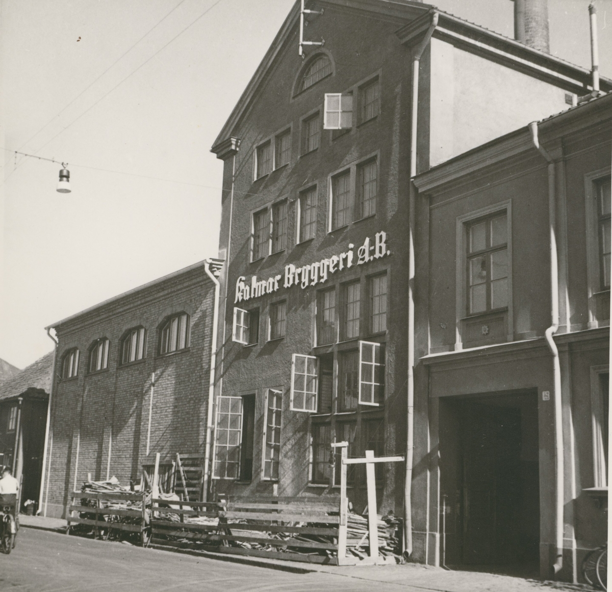Exteriör av Kalmar Bryggeri AB, troligen under ombyggnation.