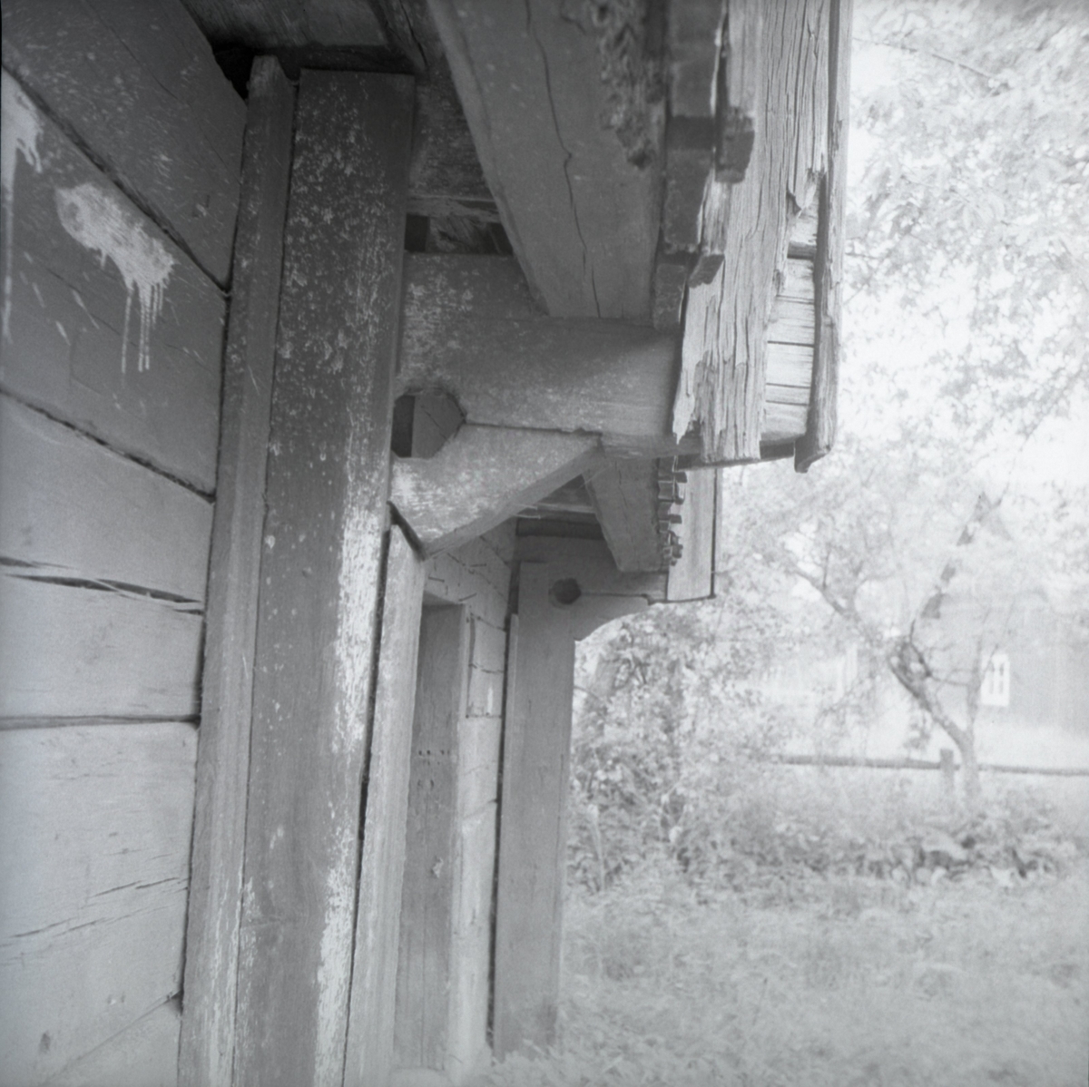 Detalj av gaveln på en bod i Norra Kvill, nationalparken.