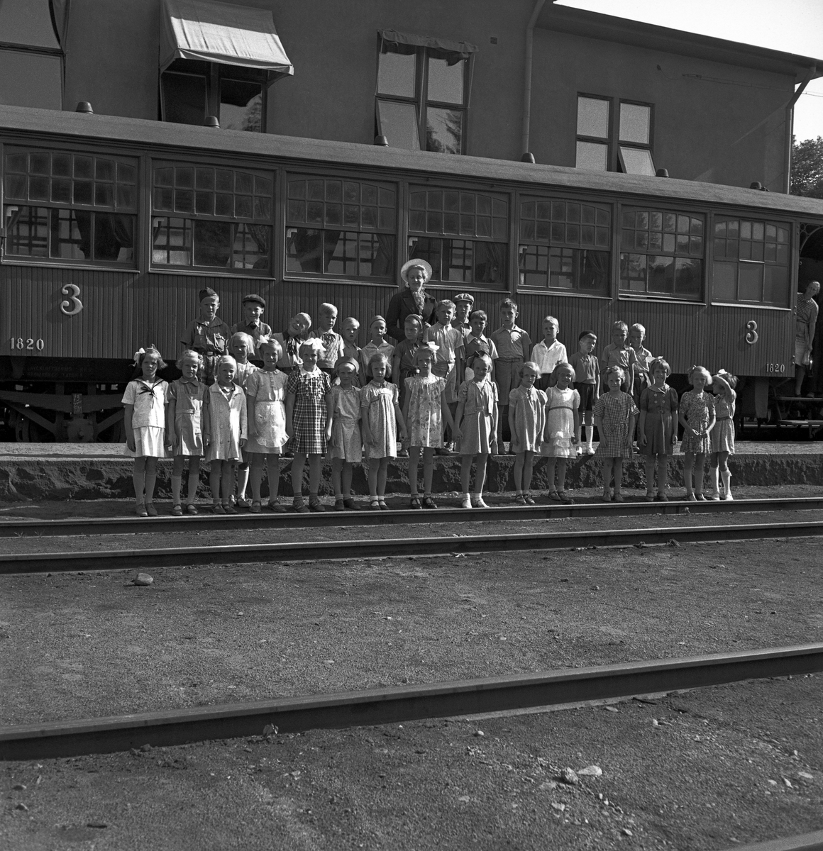 utanför tåget, strax innan avgång till barnkolonin i Skrea, Halland.