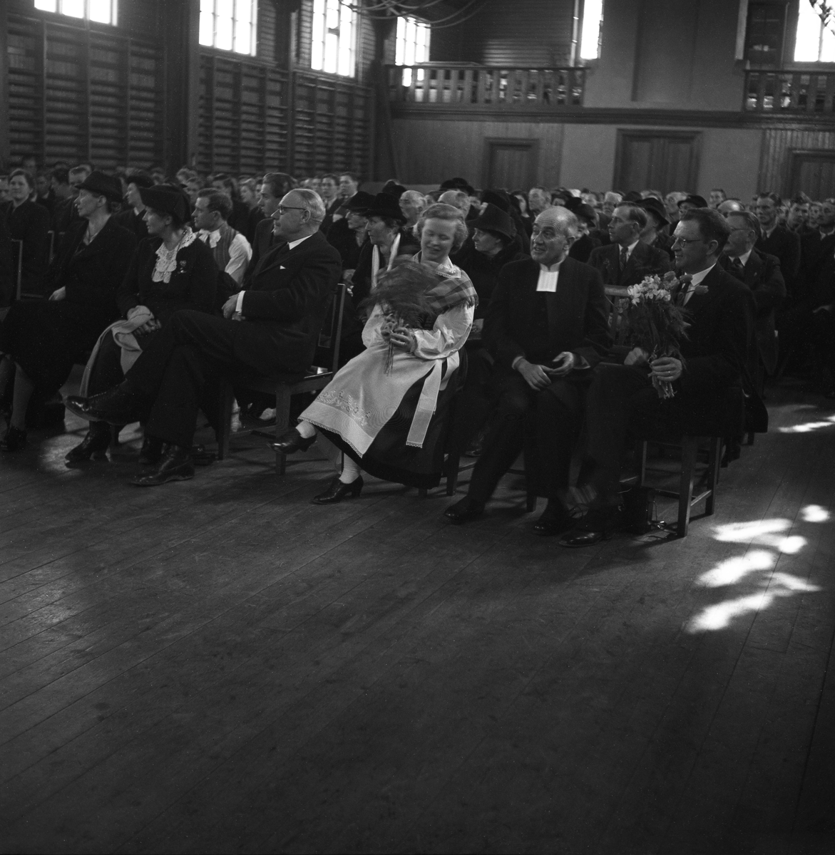 Publiken vid avslutningen i gymnastiksalen. På första raden kan bl a