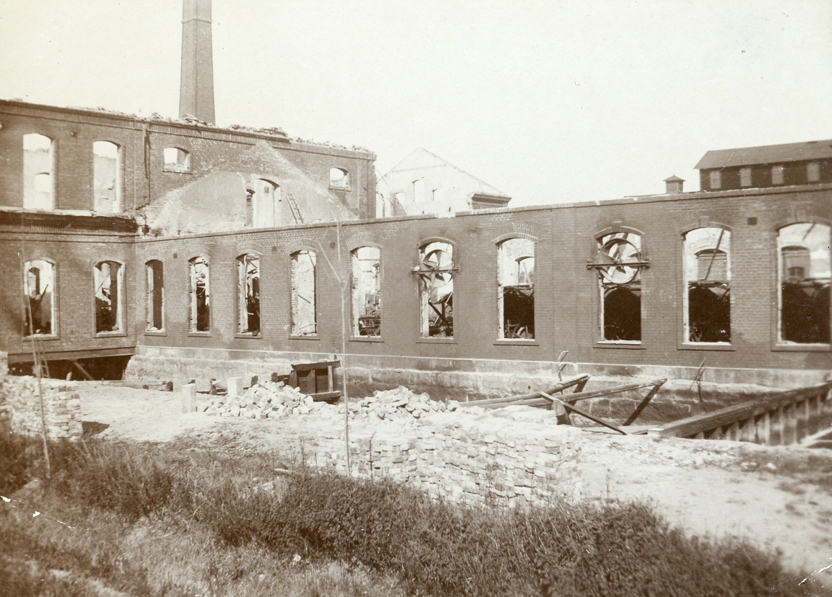 Titel: Gysinge nedbrunna sulfitfabrik efter branden den 10 augusti 1901.