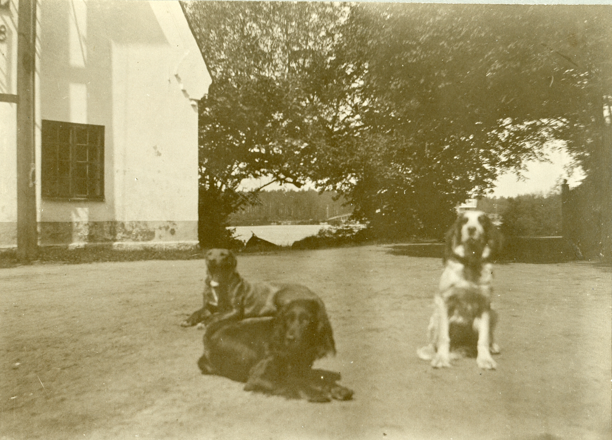 Tre hundar på gårdsplan vid Gysinge bruk.