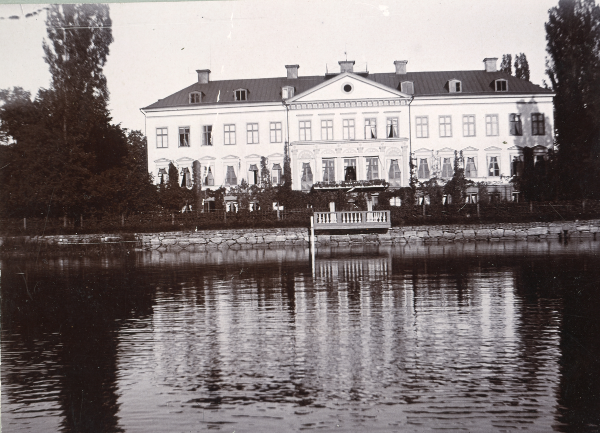 Bild på Gysinge Herrgård med Dalälven i förgrunden.