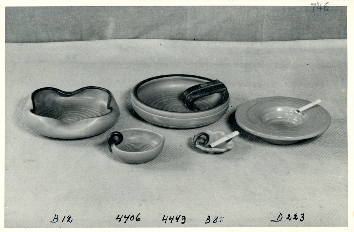 Askfat och skål från Bo Fajans, formgivna av Eva Jancke-Björk och Ewald Dahlskog, 1900-talets mitt.