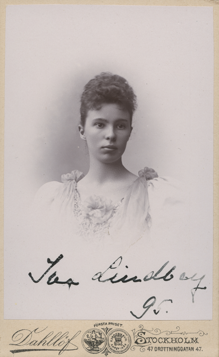 Kvinnoporträtt av .... Lindberg, troligen 1895? Fotograf Alfr. J:son Dahllöf, Stockholm.