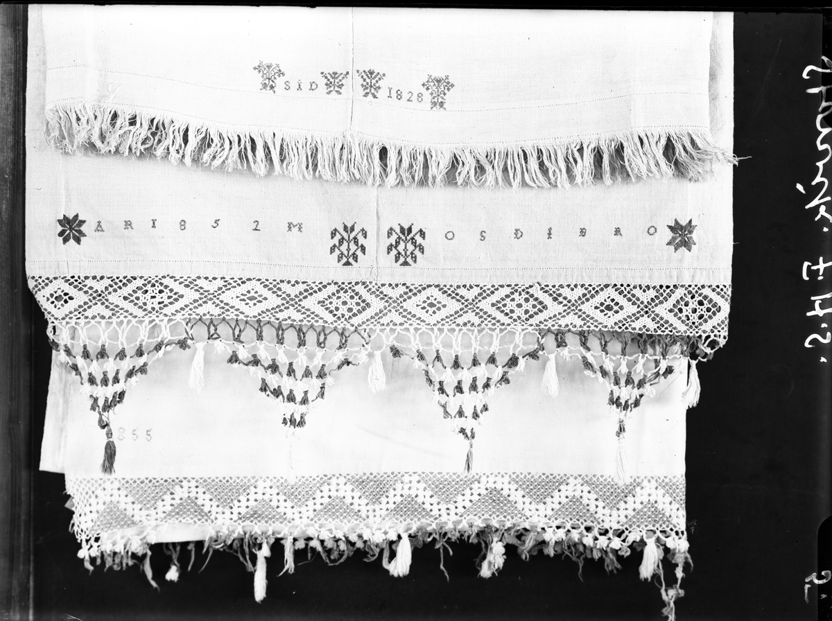 ett märkt "SID 1828", med frans och broderat i korssöm,