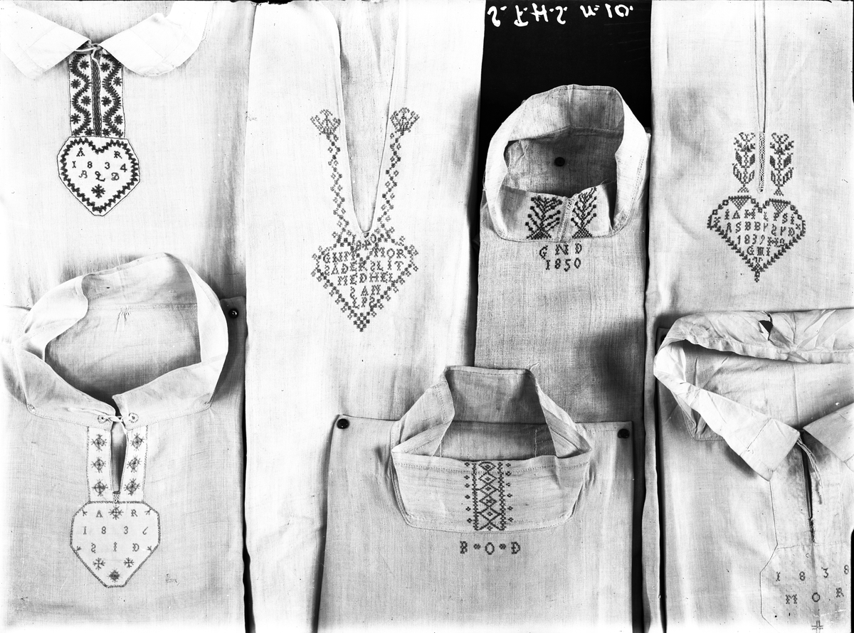 Särkar, skjortor och överdelar, 7 st, fritt broderi och korssöm.