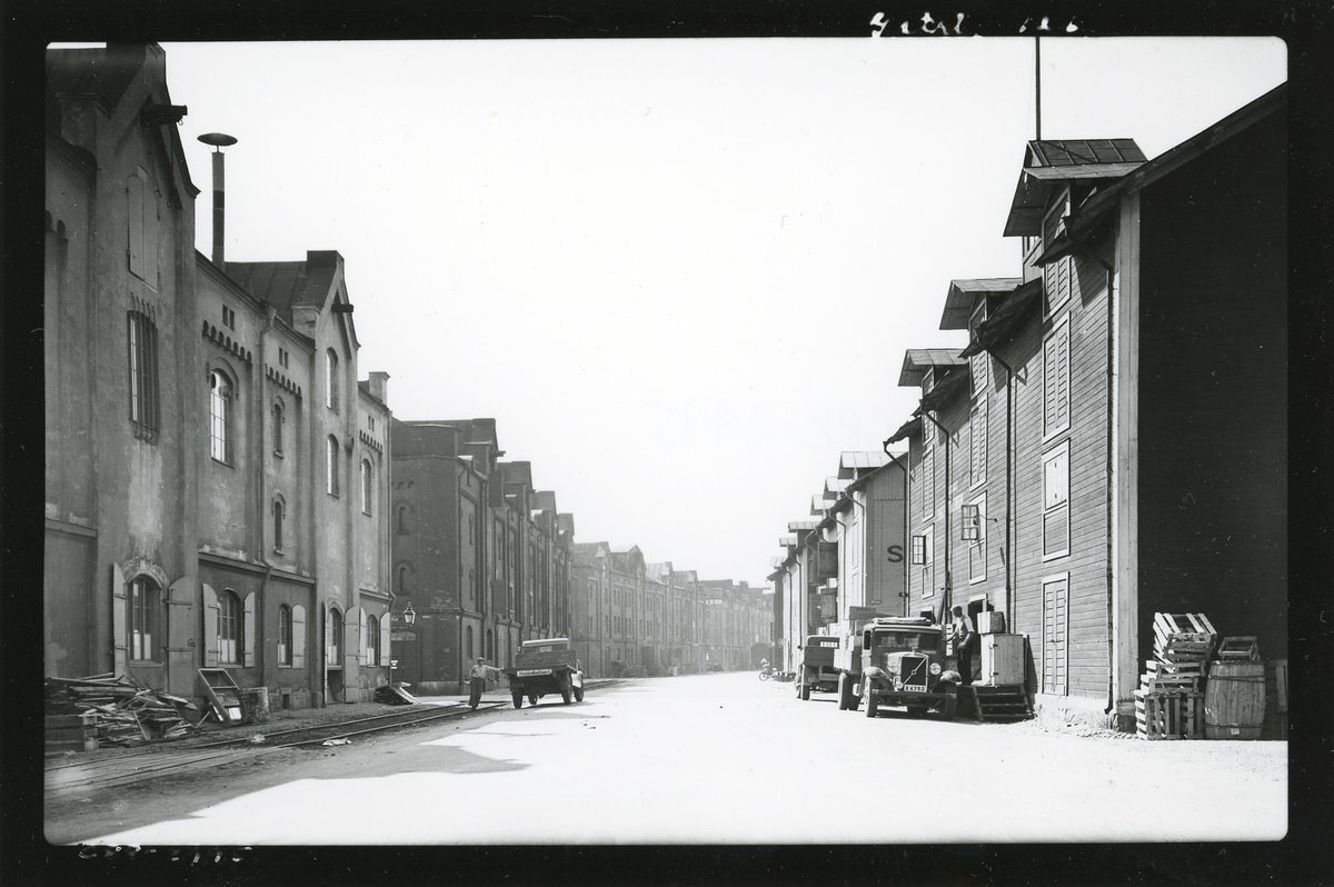 Titel: Magasinsgatorna på Alderholmen, bilden tagen 1937-38.