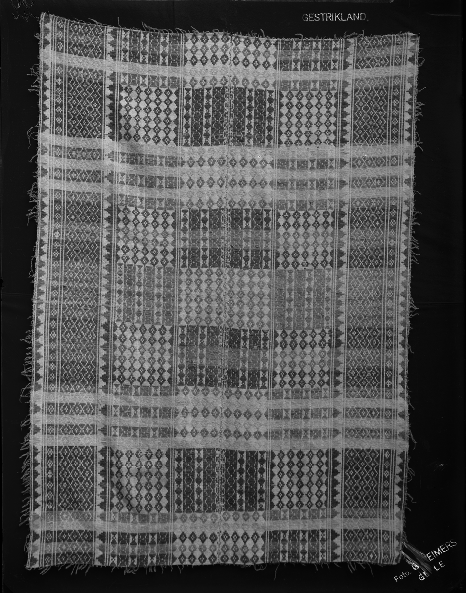 Täcke, vävt i opphämta hopsytt av två våder. (22)