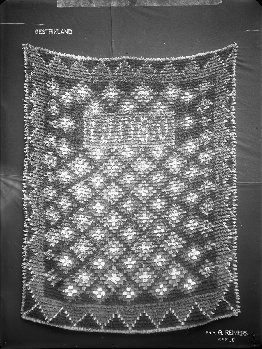 Rya med geometriskt mönster. Otydlig invävd märkning (2).