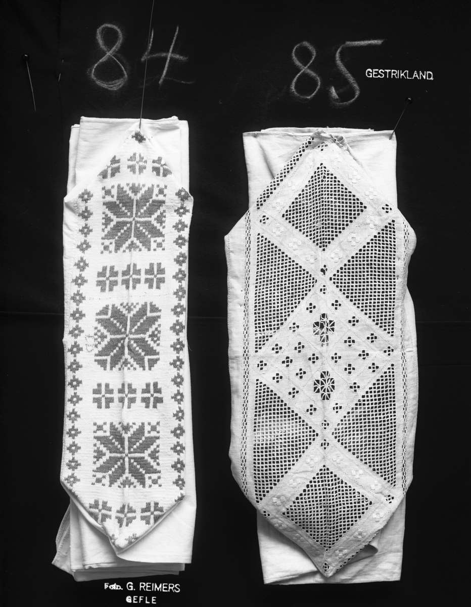 Örngott med örngottshuva broderad i utskårssöm (85).