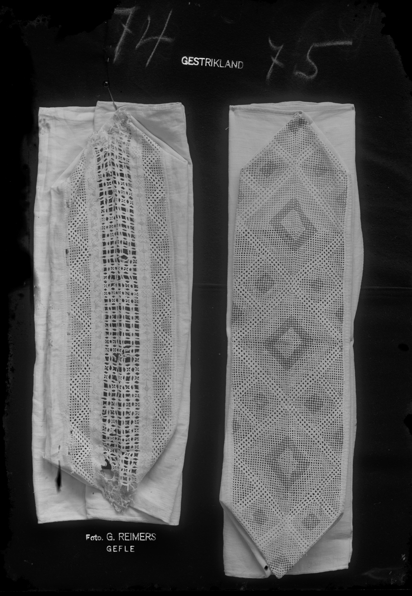Örngottshuva, näversöm (dubbel utdragssöm) och utskårssöm (74).