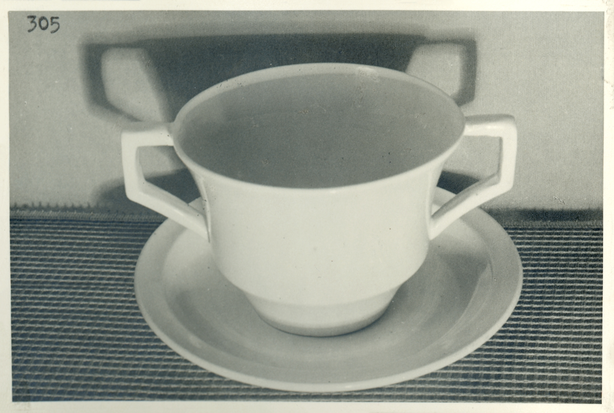 Vitglaserad buljongkopp från Bo Fajans, formgivare Ewald Dahlskog, 1900-talets mitt.