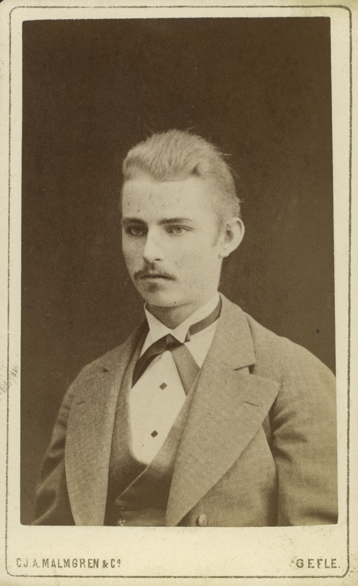 Porträtt av bokhållare Karl Sundgren (enligt text baksida kort).
