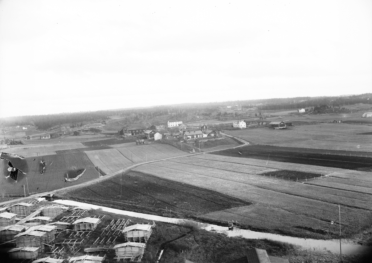 Vy mot Österhästbo. Fotot är taget från en av skorstenarna vid tegelbruket i Hästbo.