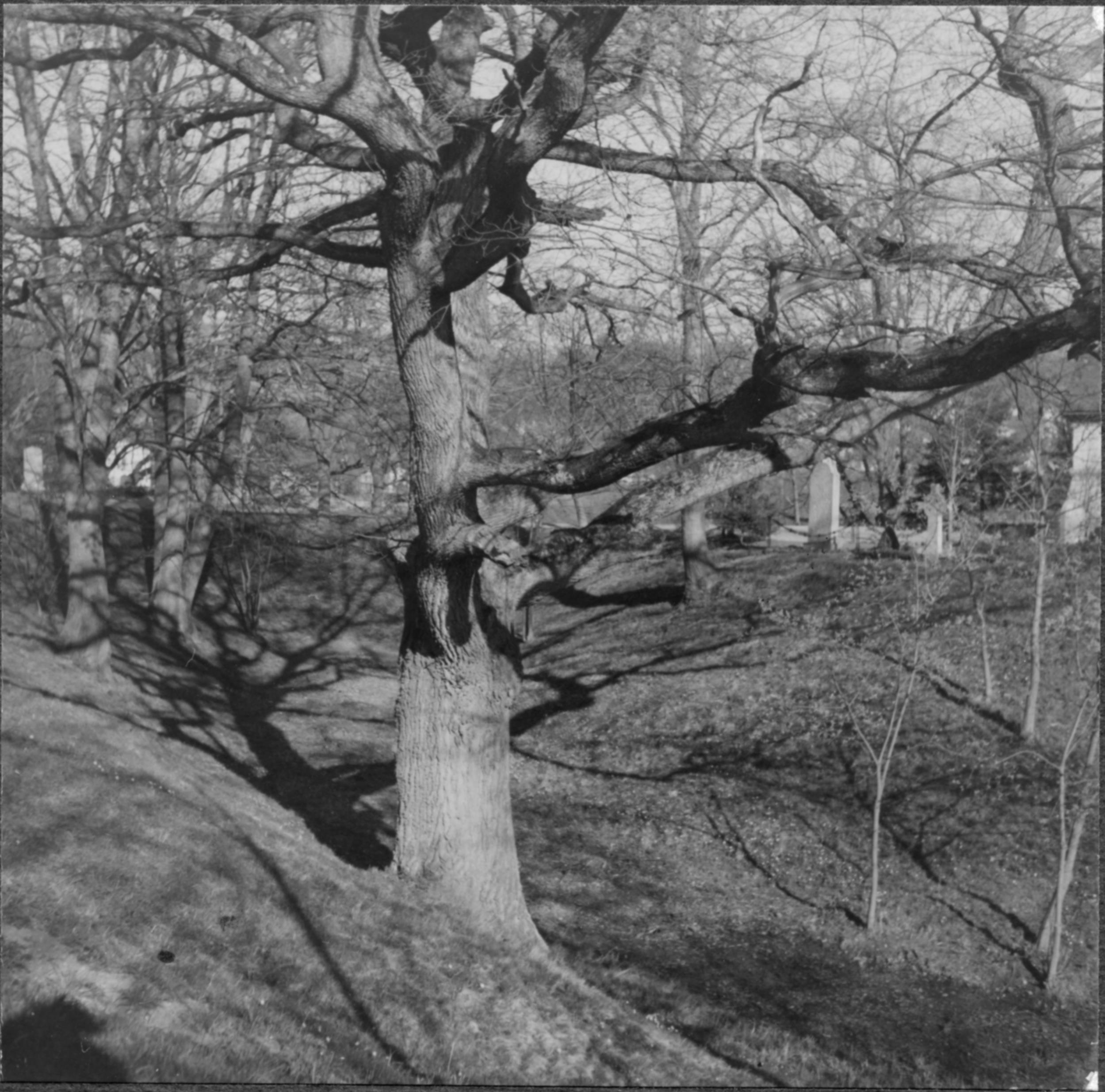 Kyrkogården mot öster från kanten av vallen.