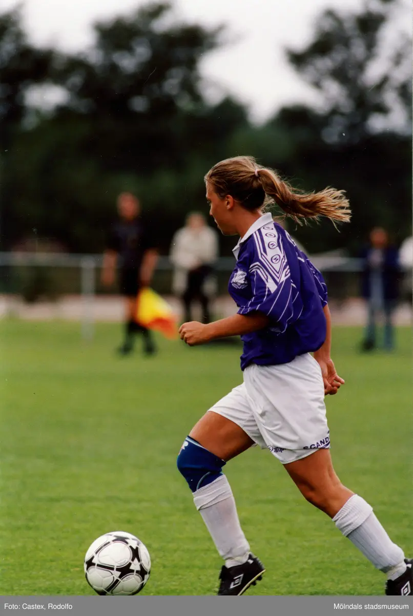 Fotbollslaget Jitex BK spelar match mot HIF Alingsås på Åbyvallen i Mölndal, år 2000.