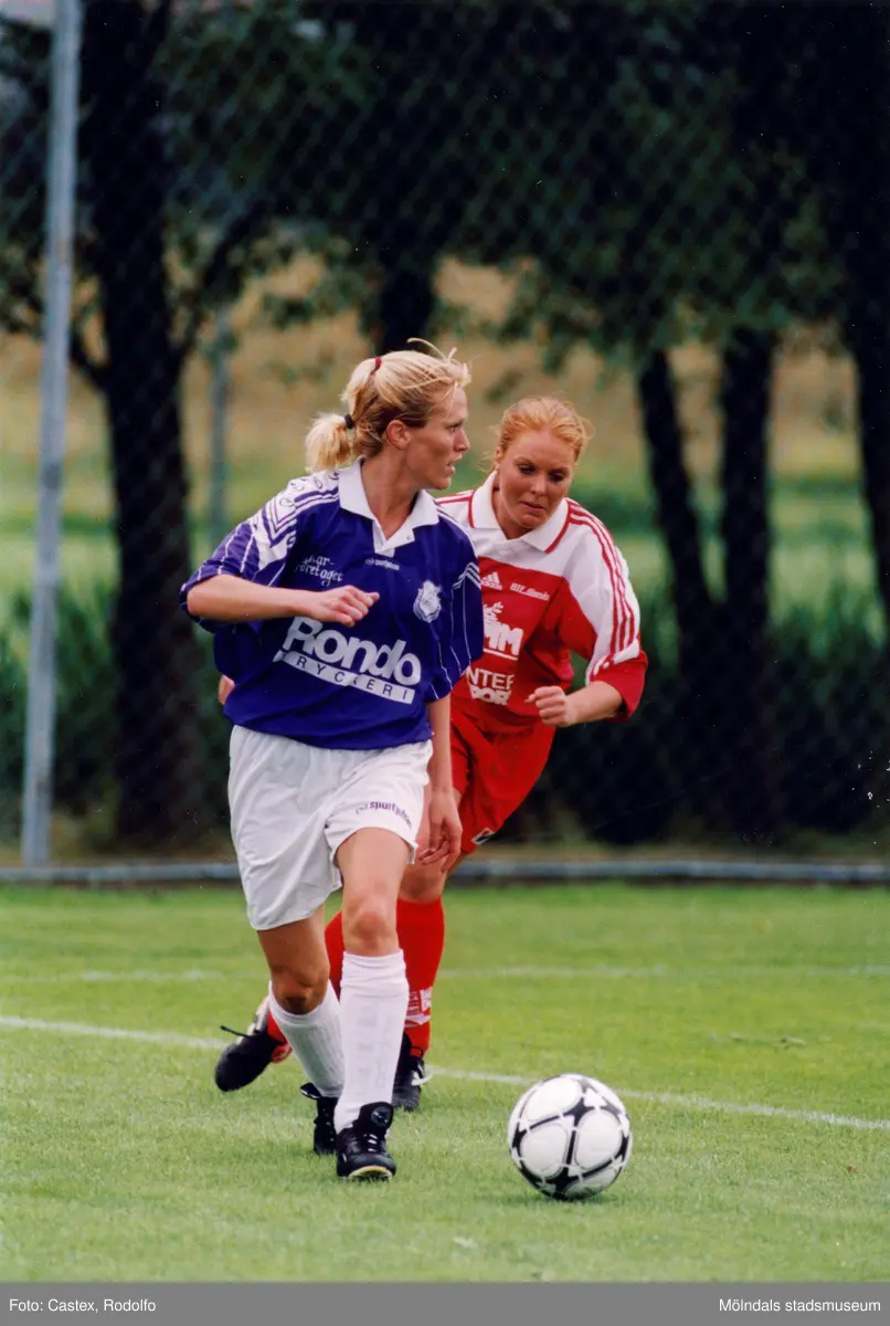 Fotbollslaget Jitex BK spelar match mot HIF Alingsås på Åbyvallen i Mölndal, år 2000.