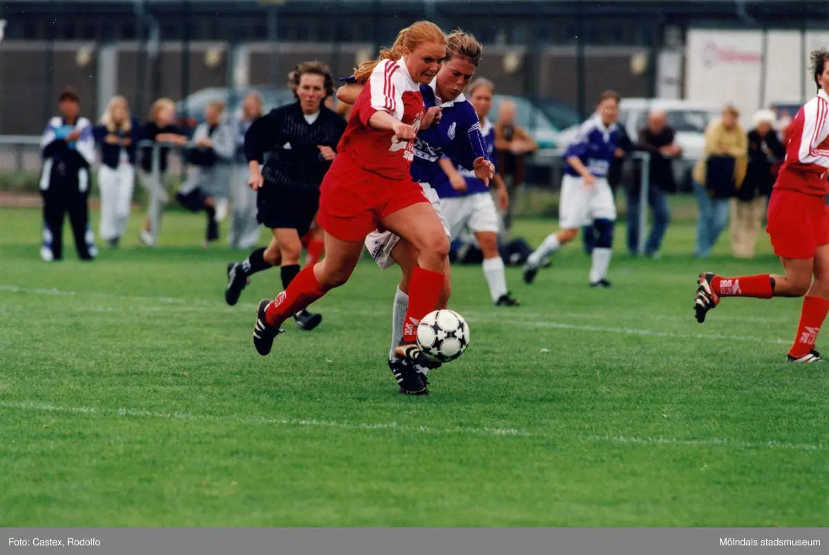 Fotbollslaget Jitex BK spelar match mot HIF Alingsås på Åbyvallen i Mölndal, år 2000.