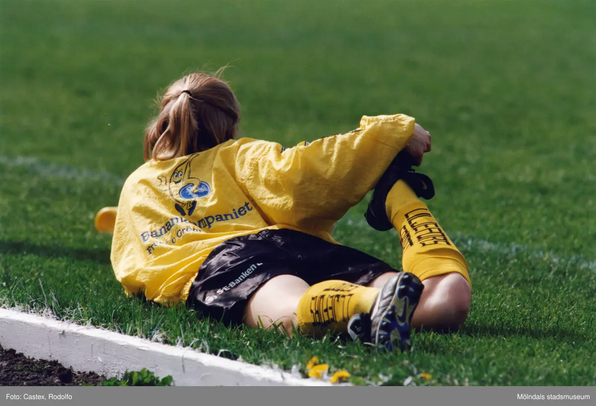 Titel: Fotbollslaget Jitex BK spelar match mot Bälinge IF på Kvarnbyvallen i Mölndal, okänt årtal.