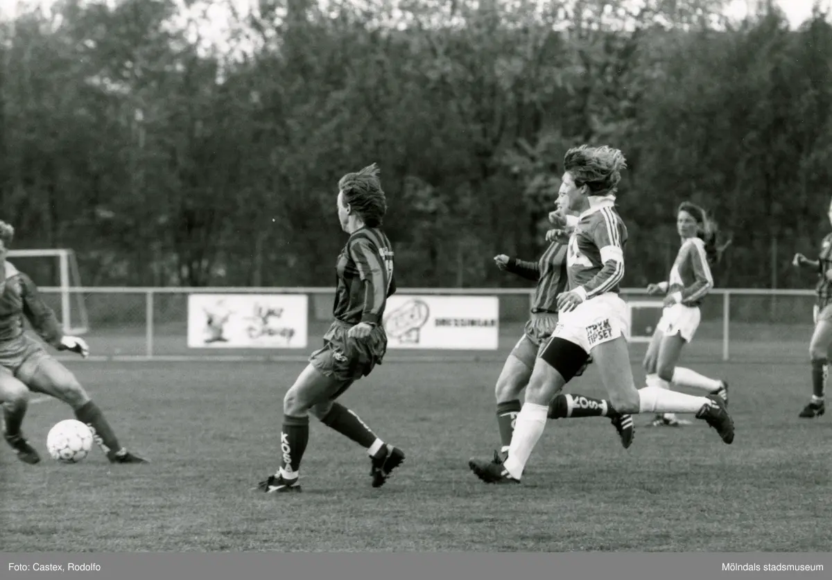 Titel: Fotbollslaget Jitex BK spelar match på Kvarnbyvallen i Mölndal, år 1989. Okänt motståndarlag och slutresultat.